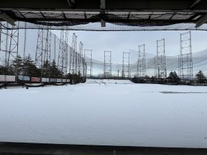 写真は真っ白になったゴルフ練習場の様子。
